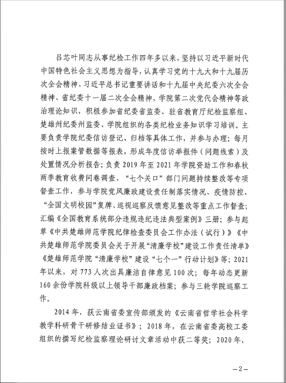关于对吕芯叶同志参评全省纪检监察工作先进初审结果的公示