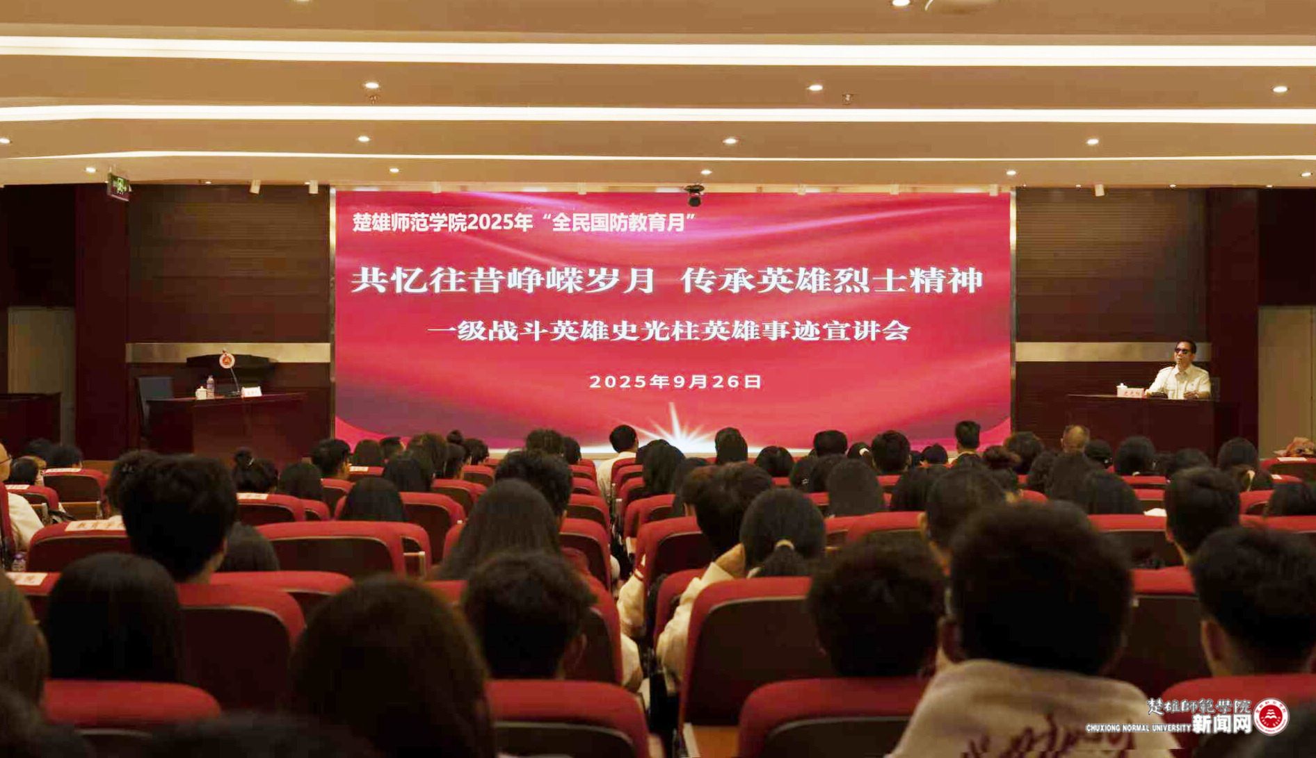 为深入贯彻落实习近平总书记关于褒扬纪念英烈工作的重要指示批示精神,大力弘扬英烈精神,充分发挥退役军人先进典型的示范引领作用,激励广大干部职工、青年学子赓续红色血脉,增强国防观念,在楚雄州退役军人事务局的支持和指导下,结合楚雄师范学院2025年“全民国防教育月”的活动安排,9月26日,学校举办主题为“共忆往昔峥嵘岁月 传承英雄烈士精神”英烈事迹宣讲报告会,邀请“一级战斗英雄”史光柱宣讲英雄事迹。各二级党组织师生代表近400人参加报告会。...