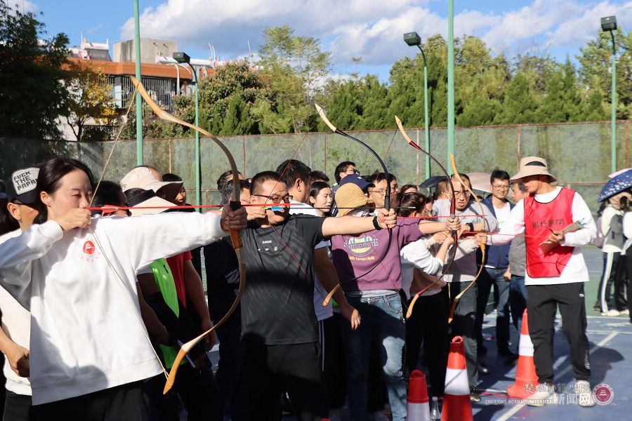 本届运动会设置了教师趣味运动项目,包括无敌风火轮、飞盘九宫格掷准、射箭3个项目。全校有12支教职工代表队参加趣味运动会,既丰富了校园文化生活,更提升了教师们的凝聚力和向心力。