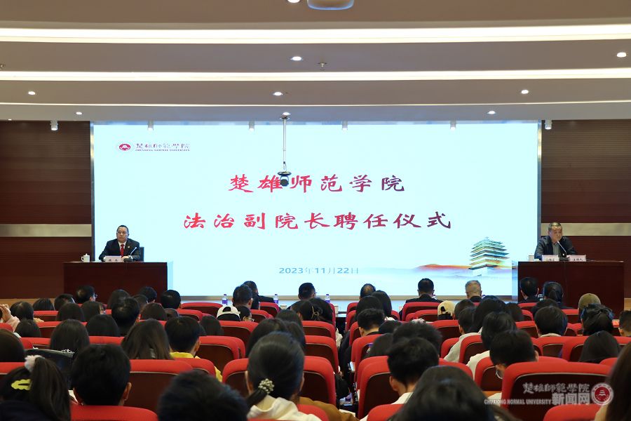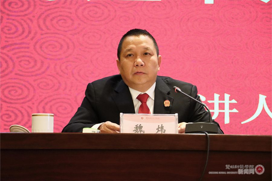 会前举行了楚雄师范学院(兼职)法治副院长、法治辅导员聘任仪式。学校聘请魏炜为楚雄师范学院(兼职)法治副院长,同时聘请楚雄州中级人民法院民事审判第三庭副庭长、四级高级法官吴启贤,楚雄州中级人民法院刑事审判第二庭四级法官助理刘鸿德2名同志为楚雄师范学院法治辅导员。学校党委书记王建雄为法治副院长、法治辅导员颁发聘书,楚雄州中级人民法院全体班子成员以及政治部、办公室相关人员参加受聘仪式。