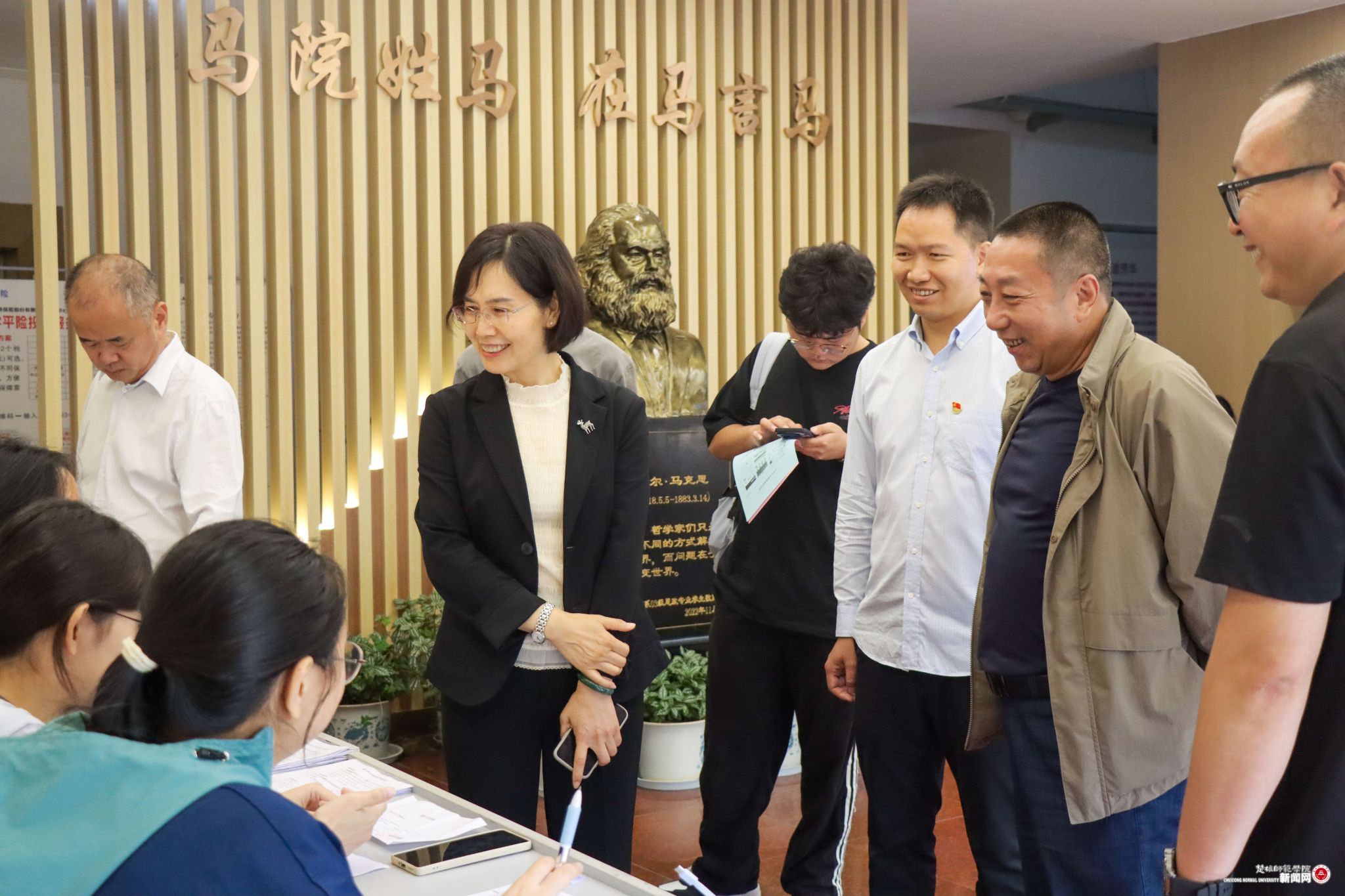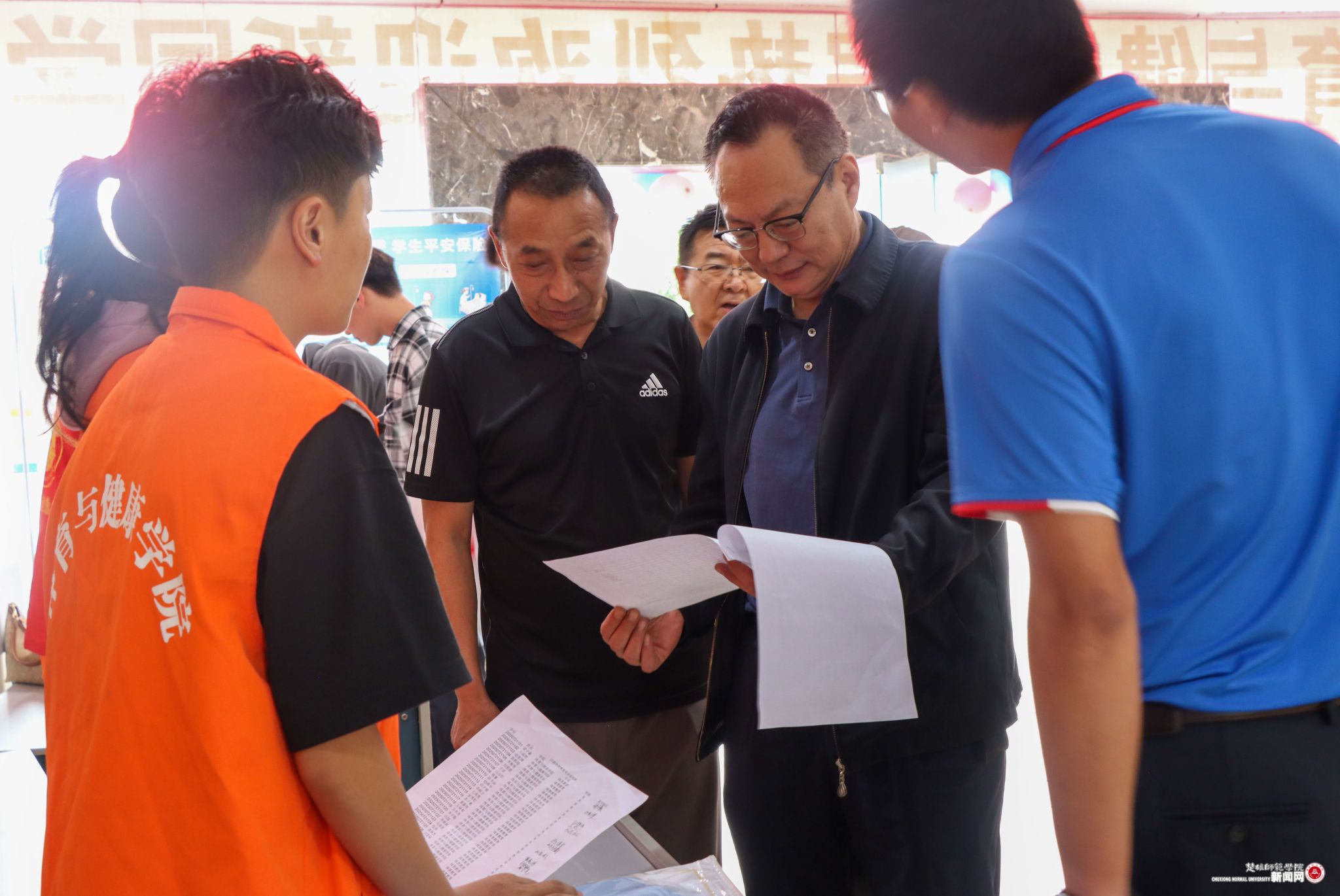 开学当天,校党委书记王建雄、校长杨桂红带领班子成员来到迎新现场,看望新生,了解迎新工作情况。校领导一行实地走访了学校集中报到点、各学院接待点及校门口交通疏导点,同新生及家长亲切交流。