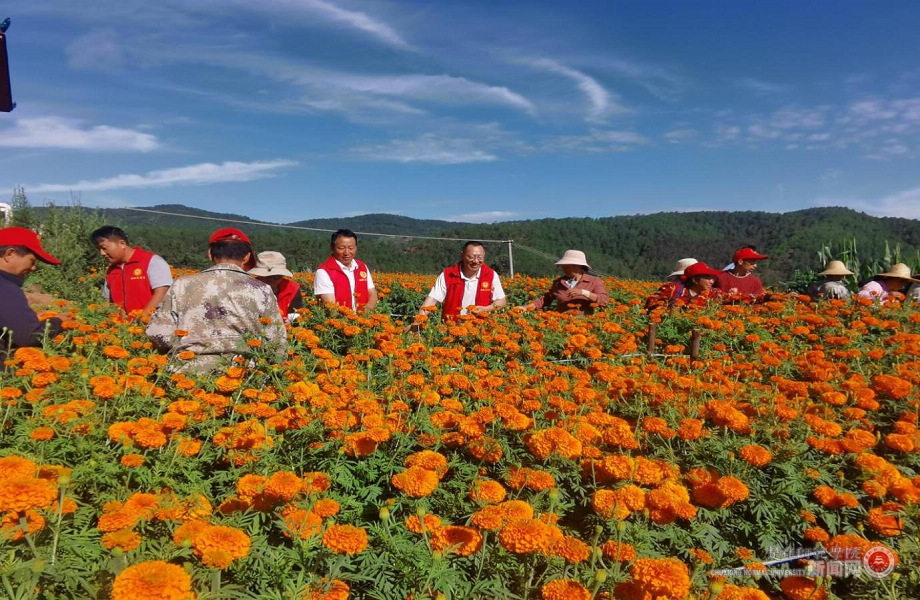 夏日炎炎,骄阳似火,菊花盛放,万寿菊迎来了最佳采摘时间。7月26日,乡村振兴工作队在双柏县妥甸镇丫口村委会党总支书记郭旺全的带领下,在万寿菊怒放的花田里一起采摘鲜花,鲜花映照丰收的喜悦,也映照着群众们红红火火的好日子。