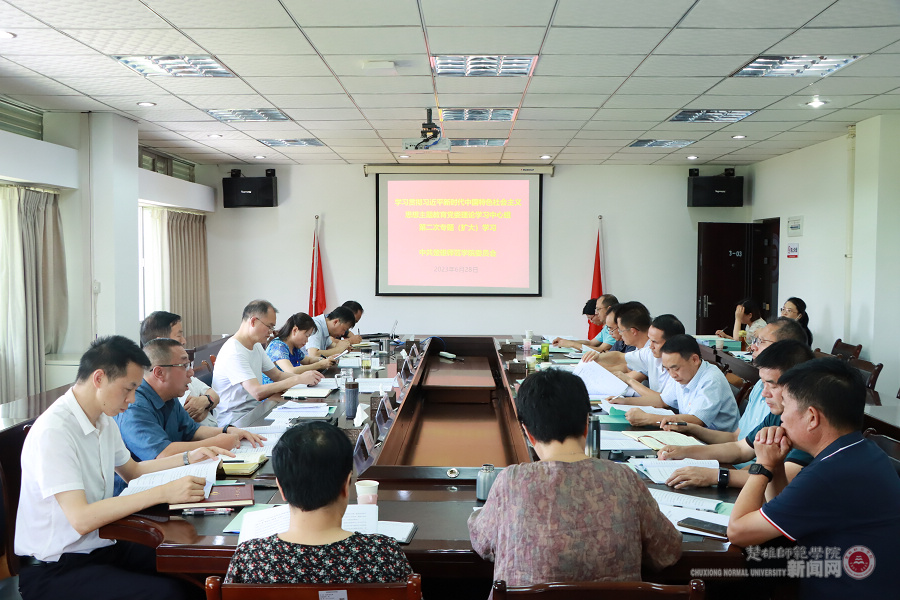 根据《中共楚雄师范学院委员会关于开展学习贯彻习近平新时代中国特色社会主义思想主题教育的实施方案》《中共楚雄师范学院委员会学习贯彻习近平新时代中国特色社会主义思想主题教育理论学习方案》和《2023年楚雄师范学院党委理论学习中心组学习计划》的安排和部署,学校于6月28日下午,在尚行楼第四会议室举行主题教育党委理论学习中心组第二次专题(扩大)学习,专题学习“浦江经验”所蕴含的立场、观点、方法以及浙江“千万工程”经验案例。学校党委领导班子成员,各二级党组织书记,党委理论学习中心组成员单位负责人参加此次学习。校党委书记何伟全主持会议。