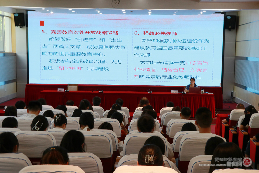 为推进学习贯彻习近平新时代中国特色社会主义思想主题教育走深走实,结合楚雄师范学院学习贯彻习近平总书记在中央政治局第五次集体学习时重要讲话精神工作要求,6月29日下午,学校党委副书记、校长王资在信息中心第一报告厅为分管联系的语言文化学院全体师生党员讲授题为《推进学校高质量发展 助力教育强国建设》的专题党课。党课由语言文化学院党委书记姜明主持,语言文化学院党委班子成员、全体教师党员、2023年新接收的预备党员和老党员代表等近200人参加。