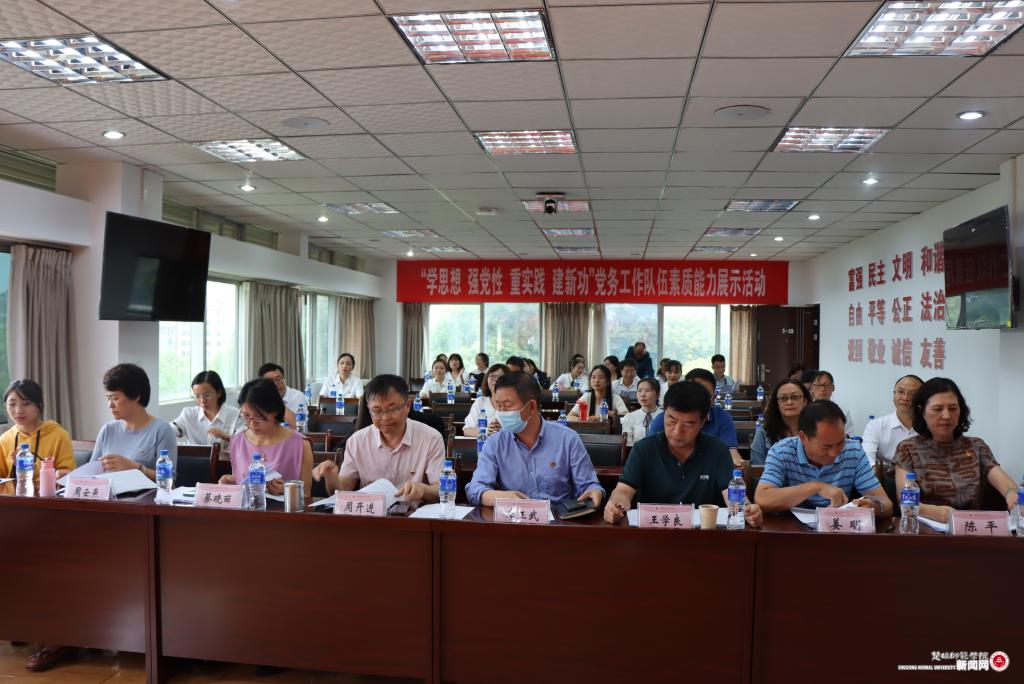 为深入学习贯彻习近平新时代中国特色社会主义思想和党的二十大精神,在主题教育中展示学校党务工作者的专业技能和工作潜质,进一步推动学校基层党建工作高质量发展,学校开展了“学思想 强党性 重实践 建新功”党务工作队伍素质能力展示活动。学校党委副书记李正武,党委委员、组织部长周开进、部分二级党组织书记和党员代表参加了本次活动,来自10个二级党组织的26名基层党务工作者参加了展示活动。