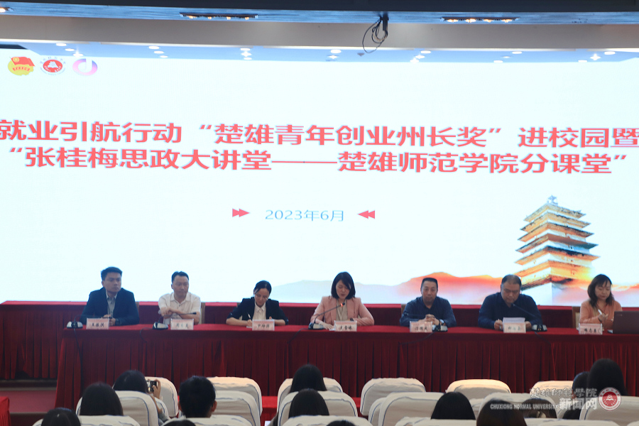 为加大对楚雄州青年创业典型的宣传,促进形成崇尚创业、支持创业、参与创业的良好校园氛围。6月14日下午,我校与共青团楚雄州委联合举办就业引航行动“楚雄青年创业州长奖”进校园暨“张桂梅思政大讲堂——楚雄师范学院分课堂”宣讲活动在信息中心第一报告厅举行。共青团楚雄州委书记左雪妹,共青团楚雄州委青发部部长唐佐梅,学校党委委员、宣传部部长、统战部部长刁国庆,校团委相关人员及青年学生代表共同参加活动。宣讲活动由校团委副书记邹治豪主持。