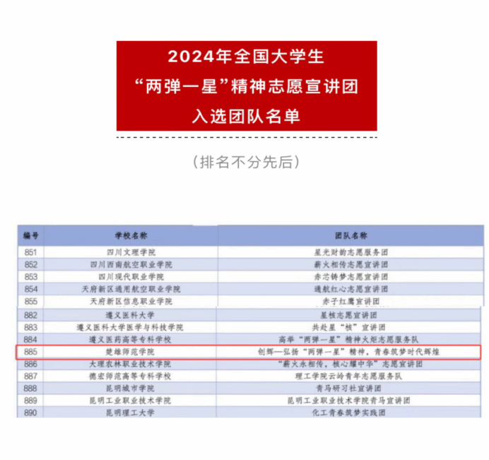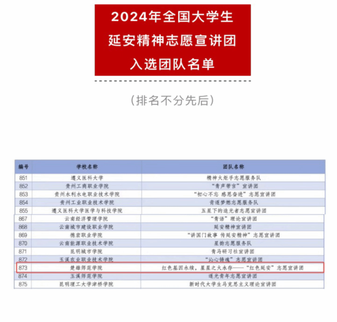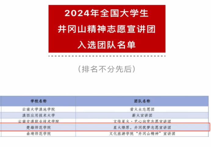 近日,首批全国大学生弘扬中国共产党精神谱系志愿宣讲团遴选名单陆续公布,我校3支团队分别入选井冈山精神志愿宣讲团、延安精神志愿宣讲团、“两弹一星”精神志愿宣讲团。