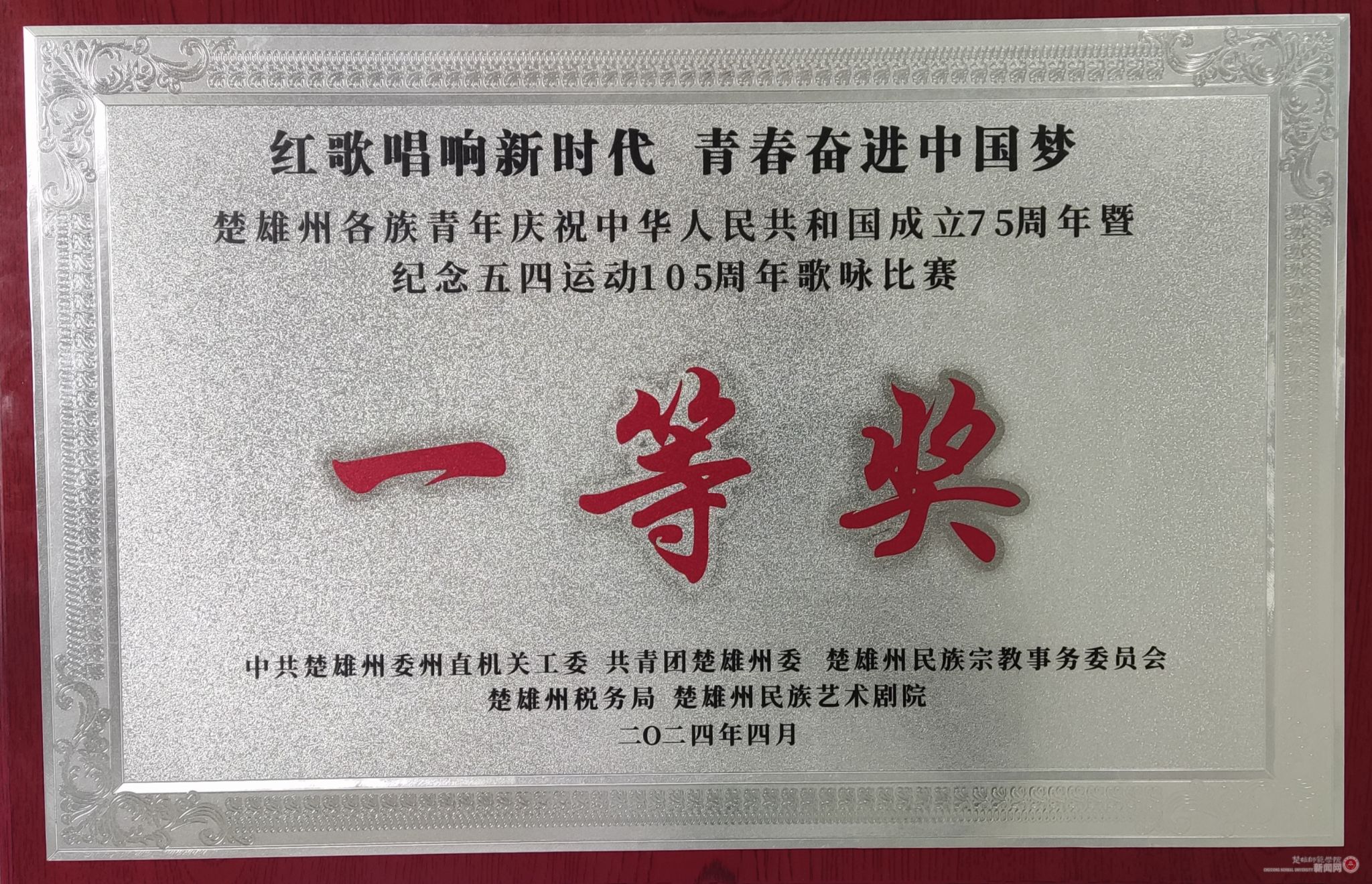 4月29日下午,楚雄州各族青年庆祝中华人民共和国成立75周年暨纪念五四运动105周年歌咏比赛决赛在楚雄州文化中心举行。经过激烈角逐,我校代表队合唱曲目《敕勒川》,以其深厚的文化内涵、激昂的旋律和深厚的合唱功底,在全州26个单位中脱颖而出,荣获一等奖。