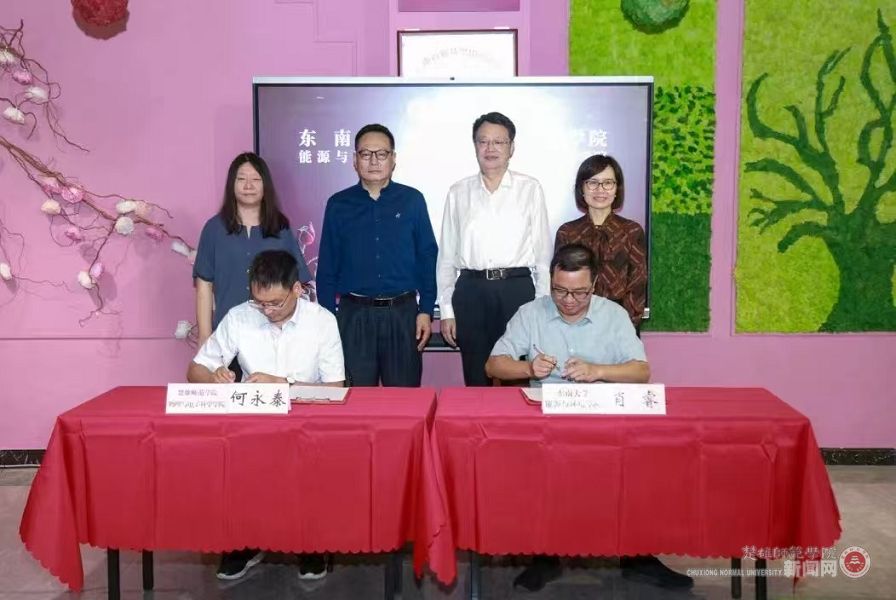 8月29日,东南大学能源与环境学院与我校物理与电子科学学院在昆明签署合作协议。东南大学党委书记左惟、云南省教育厅规划处四级调研员范嫣然、楚雄师范学院党委书记王建雄、校长杨桂红、副校长何永泰见证签约仪式。