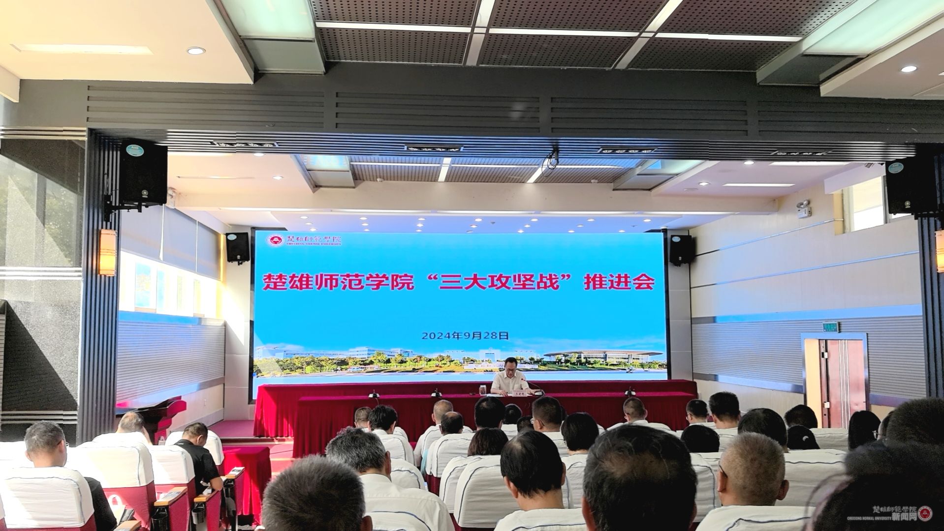 为进一步统一思想,坚定信心,攻坚冲刺,坚决打赢学校既定的攻坚决胜战,9月28日,学校召开“三大攻坚战”推进会。全体校领导和处级干部参加会议。会议由党委书记王建雄主持并作工作安排。