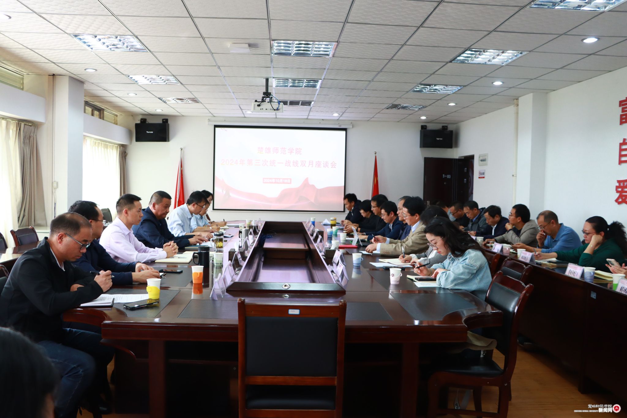 10月18日,学校举行2024年第三次统一战线双月座谈会,学习贯彻习近平总书记在全国民族团结进步表彰大会上的重要讲话和给普洱民族团结誓词碑盟誓代表后代的重要回信精神。