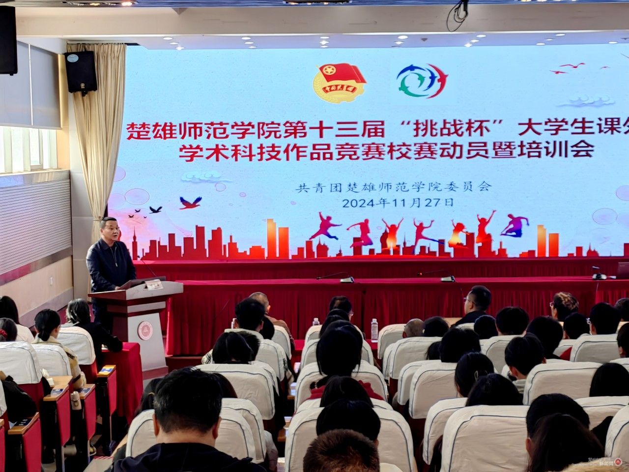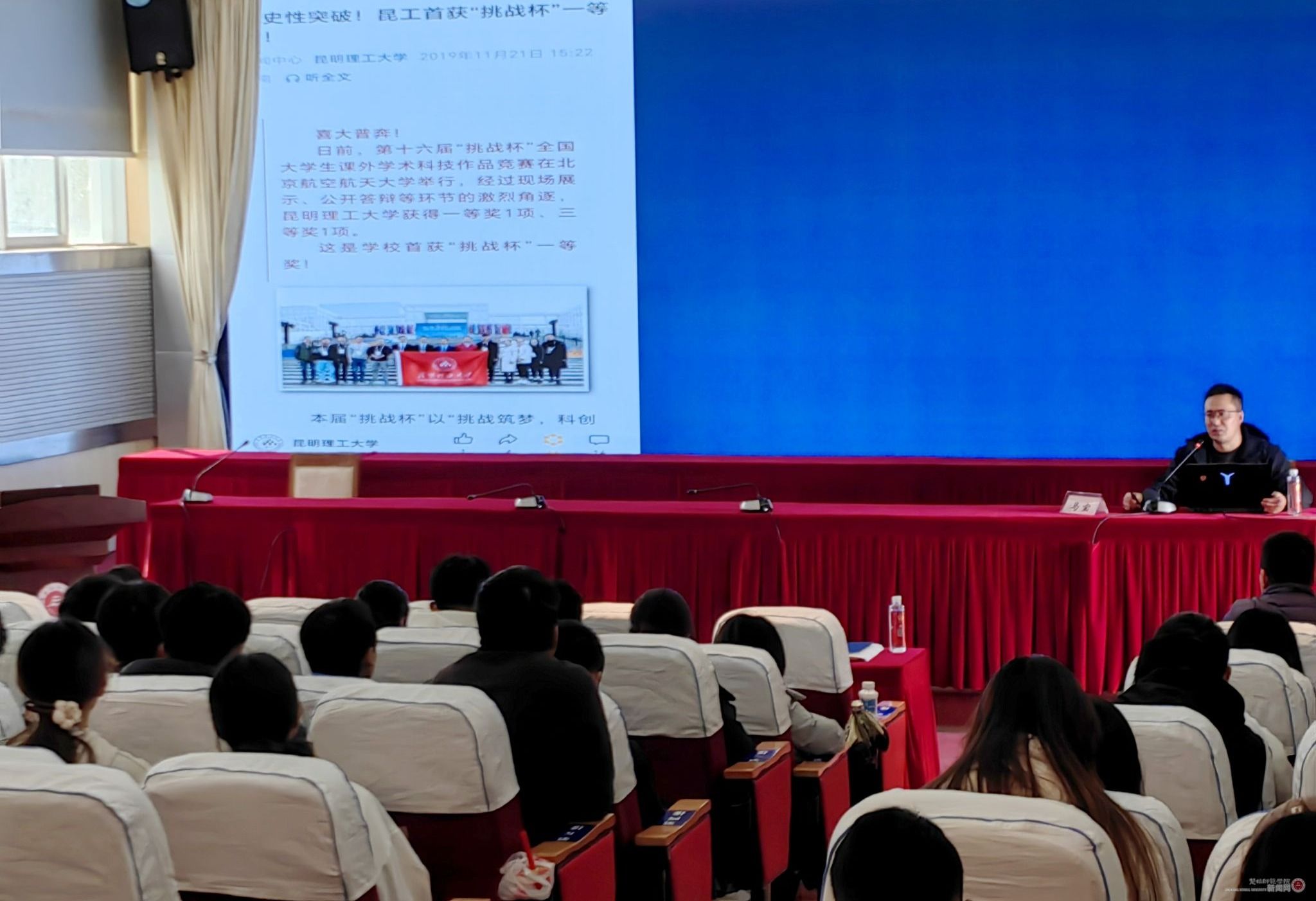 11月27日下午,学校召开2025年“挑战杯”竞赛动员暨专题培训会。党委副书记施红星,党委委员、宣传部部长马文军出席会议。会议特邀昆明理工大学校团委科技实践部部长、全国“挑战杯”优秀工作者马宝老师进行专题辅导。各学院分管学生工作的领导、团委书记,“挑战杯”竞赛参赛学生代表、指导教师代表,相关部门负责人参加会议。