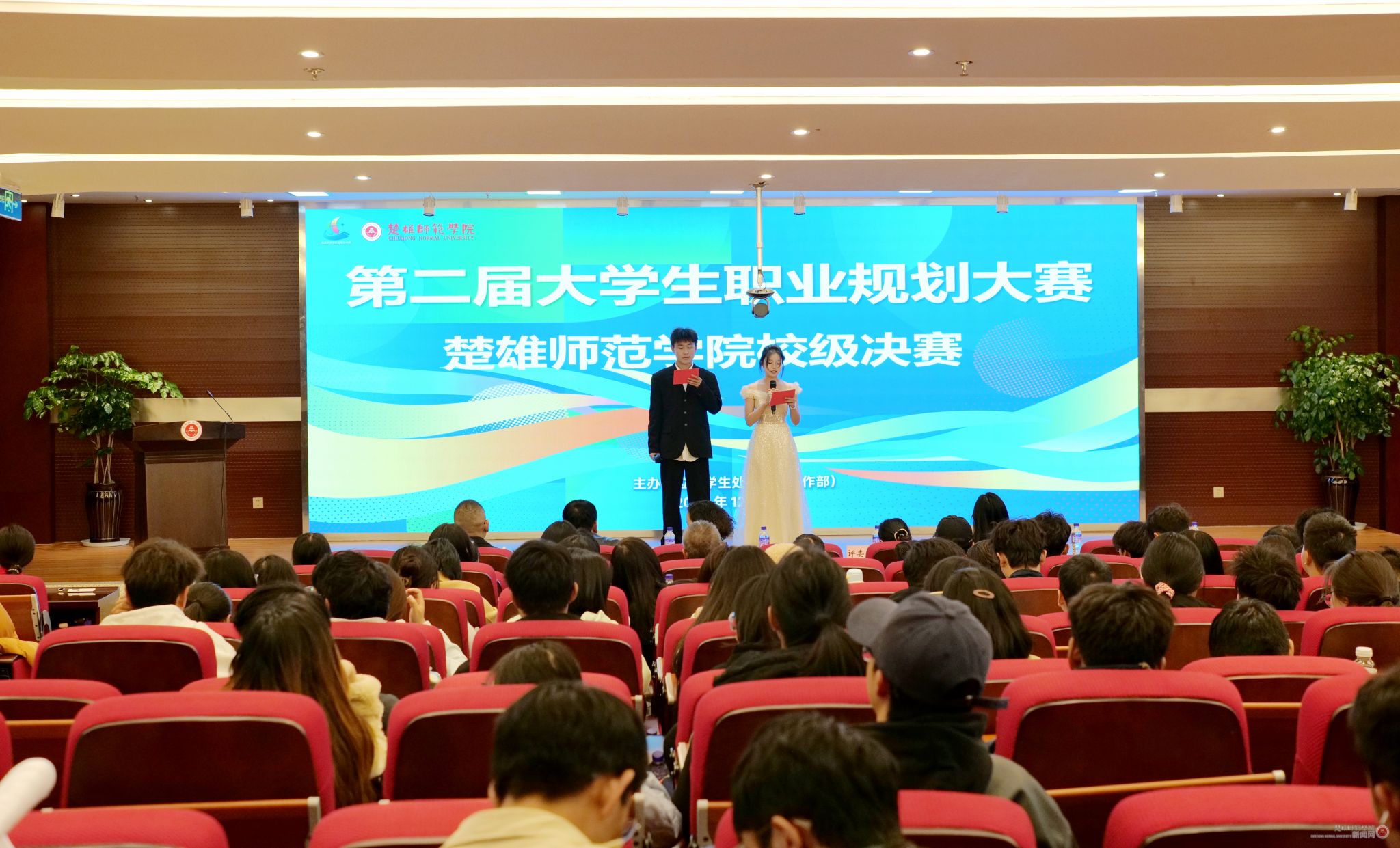 12月12日晚,第二届大学生职业规划大赛校级决赛在教师进修综合楼报告厅拉开帷幕。副校长江枫出席并致辞,各二级学院的分管领导及近300名师生现场观赛。
