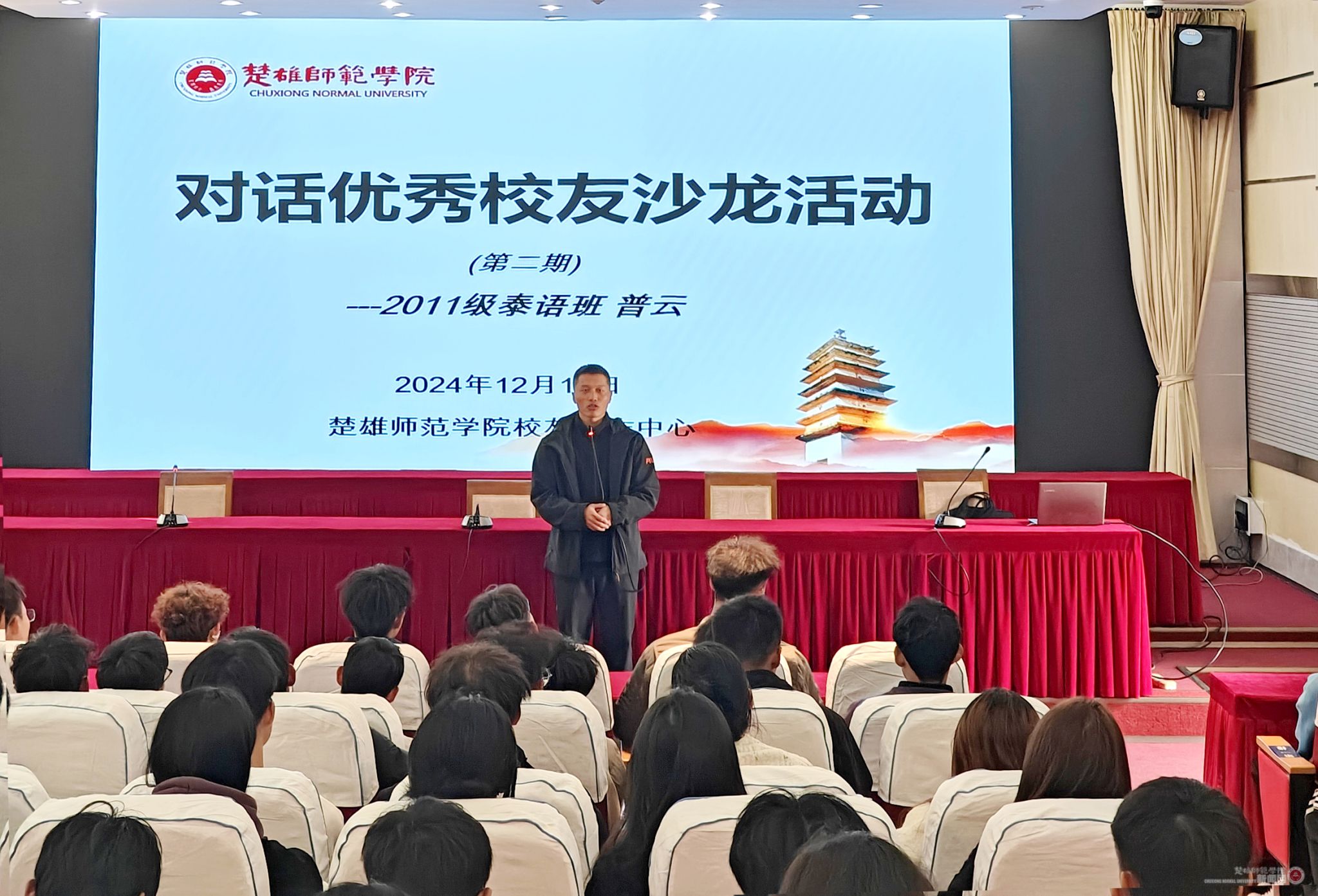 12月13日,学生处校友工作中心在信息中心第一报告厅举办第二期“对话优秀校友”沙龙活动,邀请2015届泰语专业普云校友来校交流。学校国旗班和军事爱好者协会的同学们参加活动。