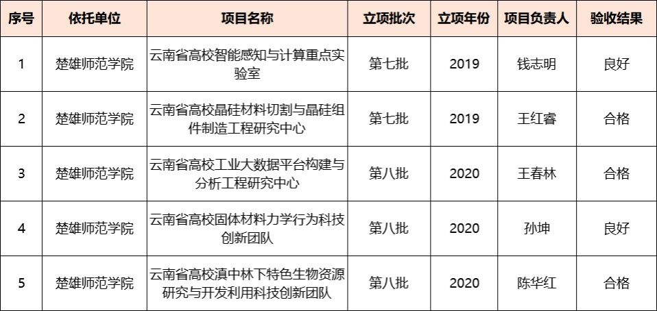 近日,云南省教育厅发布《关于公布第七批和第八批云南省高校重点实验室、工程研究中心和科技创新团队验收结果的通知》,经专家组评审,省教育厅审核,我校立项建设的“云南省高校智能感知与计算重点实验室”等5个项目通过验收。