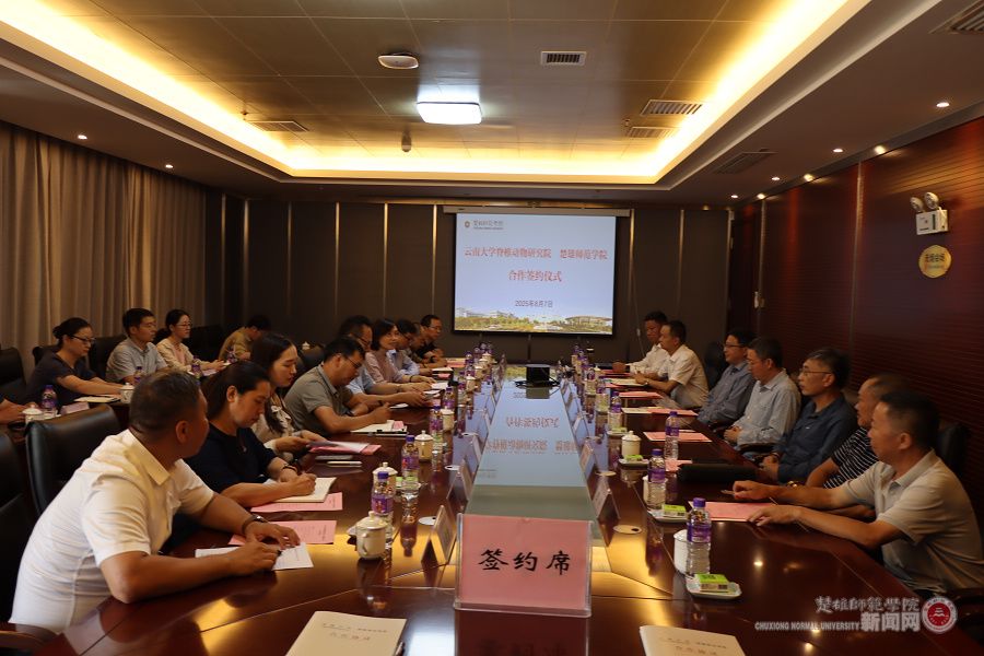 8月7日下午,楚雄师范学院与云南大学脊椎动物演化研究院合作签约仪式在教师进修综合楼第三会议室举行。云南大学脊椎动物演化研究院相关成员、楚雄彝族自治州人民政府相关领导、我校党委书记王建雄、校长杨桂红,党委委员、副校长何永泰出席签约仪式,农学院、化学与地理科学学院、人事处、对外合作交流处等相关工作人员参加签约仪式。签约仪式由校长杨桂红主持。