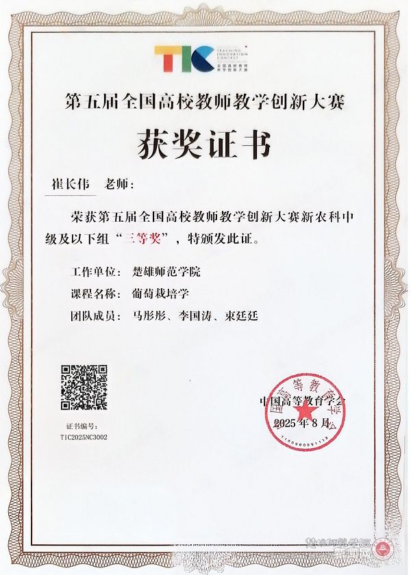 近日,第五届全国高校教师教学创新大赛决赛在北京理工大学圆满落幕。经过激烈角逐,我校农学院崔长伟教师团队荣获新农科组三等奖,实现了我校在该项国家级高水平教学赛事中新农科领域的重要突破,彰显了我校在新农科建设与教学改革方面的显著成效。