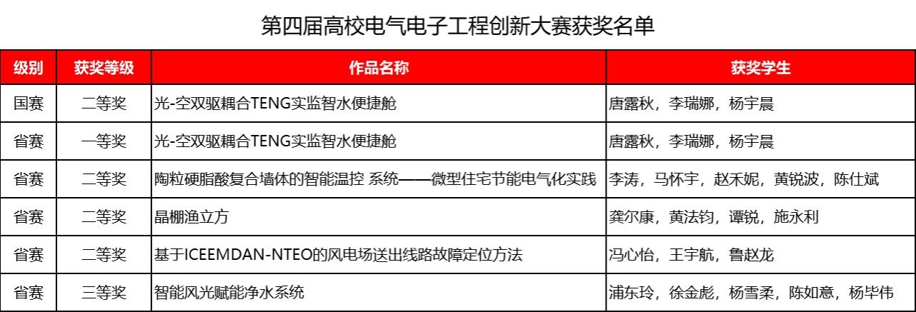 在国家级赛事中,物电学子表现尤为突出。第四届高校电气电子工程创新大赛全国总决赛中,学院新能源科学与工程专业团队凭借作品《光-空双驱耦合TENG实监智水便捷舱》成功从全国305所高校2646支队伍中突围,获全国总决赛二等奖,并在省赛中实现“一等奖1项、二等奖3项、三等奖1项”的多点突破。