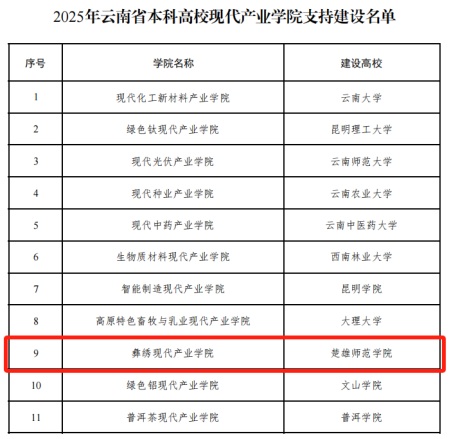 云南省教育厅、省发展改革委、省工业和信息化厅联合发布《关于公布 2025 年省级本科高校现代产业学院和专业特色学院支持建设名单的通知》,全省共立项建设11个省级现代产业学院,我校“彝绣现代产业学院”成功入选,成为我校首个获批的省级现代产业学院。该学院以彝族刺绣非物质文化遗产传承与产业升级需求为导向,联合地方文旅部门、彝绣龙头企业共建教产学研一体化平台,将传统工艺与现代设计、数字技术相结合,既助力地方特色产业高质量发展,也为我校应用型人才培养提供了新载体。