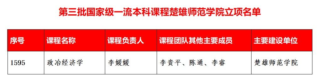 在教育部公布的第三批国家级一流本科课程认定结果中,我校李媛媛教师团队主持的《政治经济学》课程成功入选,首次实现我校在国家级一流本科课程建设领域“零的突破”。该课程依托学校经济学学科优势,将思政元素与专业知识深度融合,有效提升学生对经济理论的应用能力与价值认同。