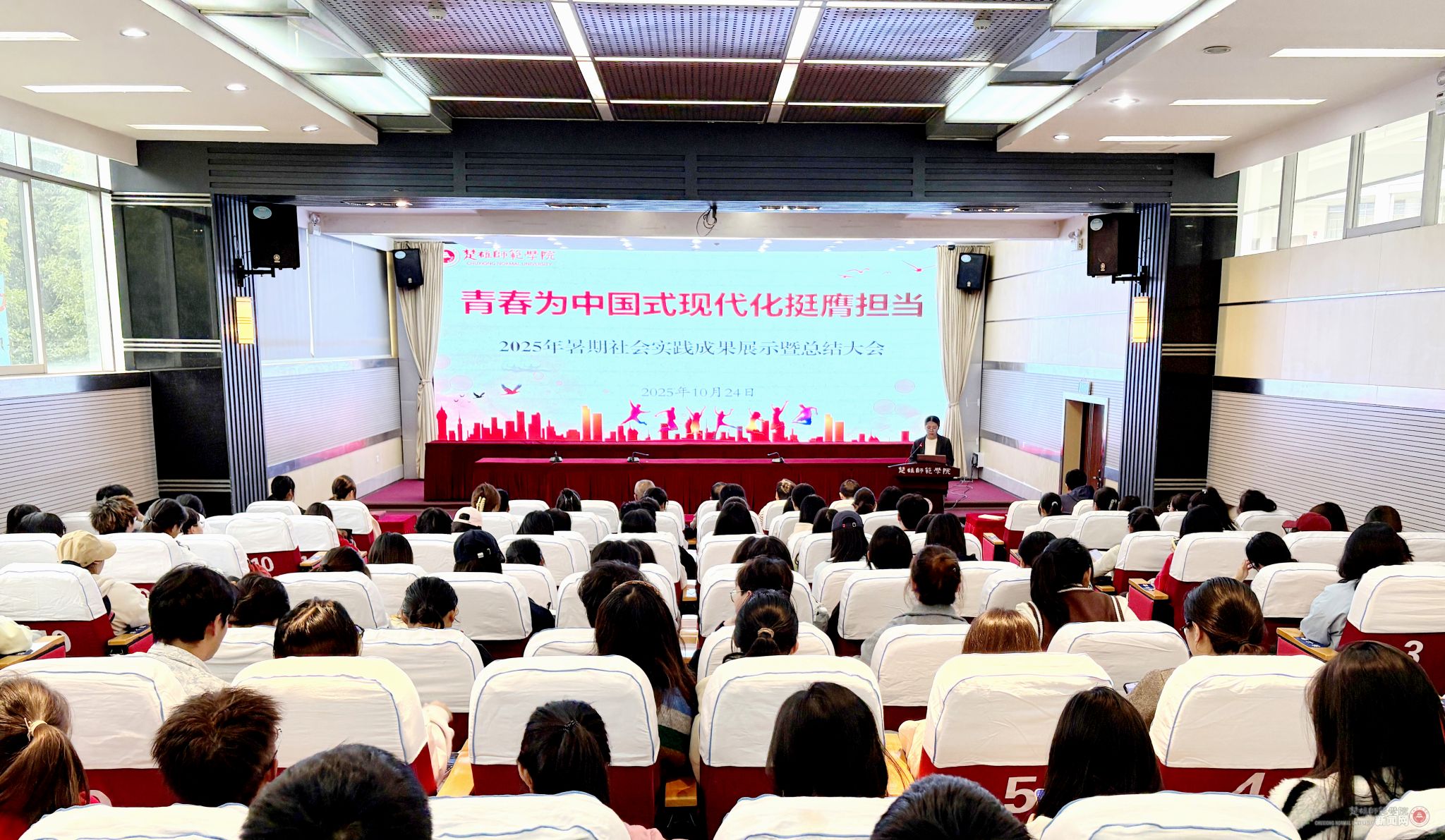 10月24日下午,学校在花果山校区信息中心一报告厅举行2025年暑期社会实践成果展示暨总结大会。各学院分管学生工作的领导、团委书记、优秀实践团队和个人及学生代表齐聚一堂,共同回顾实践历程,表彰先进典型。