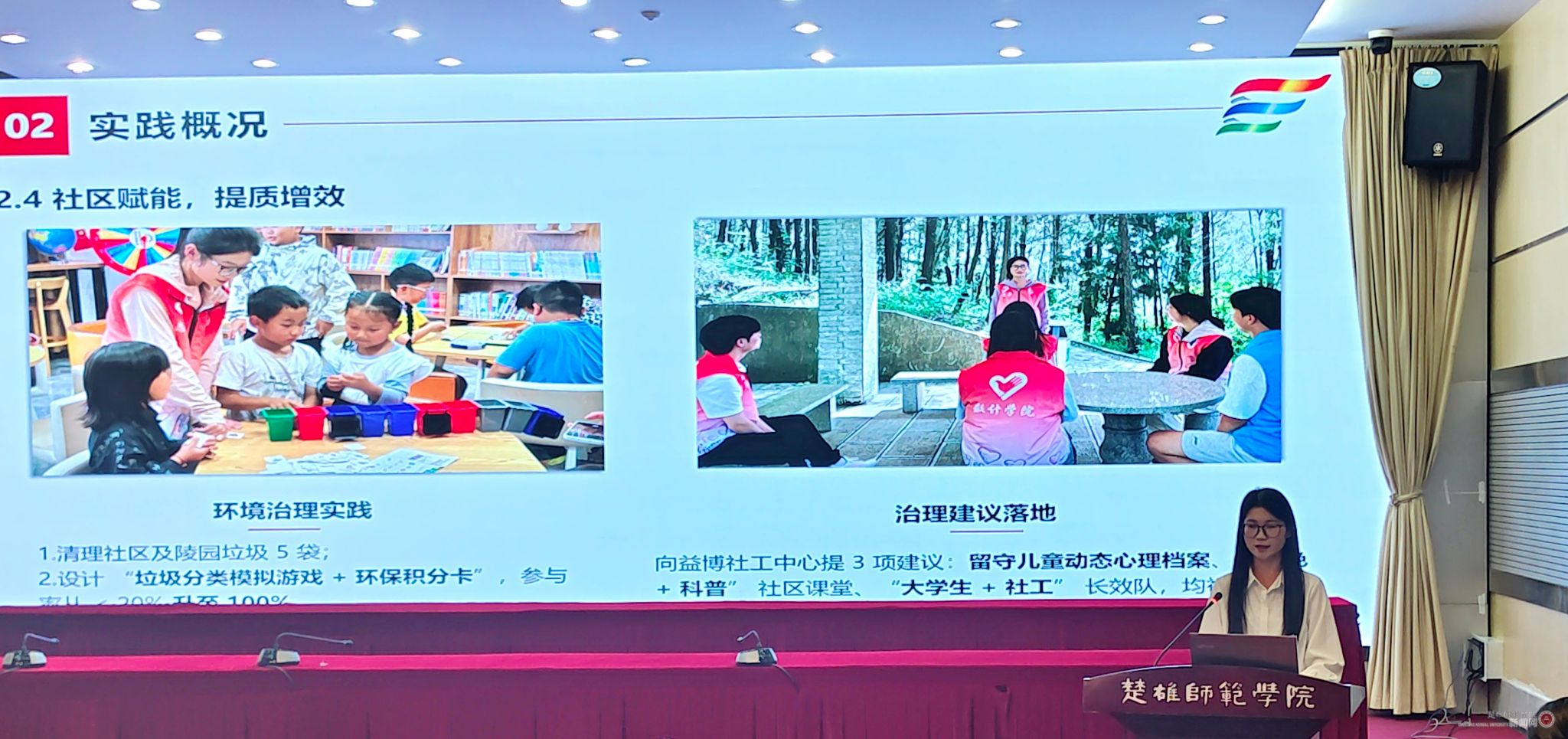 大会核心聚焦青年实践心声。在成果展示环节,马克思主义学院学生会执行主席杨雯琪、星火青年实践团队长浦冉、管理与经济学院刘梦怡同学作为代表,结合亲身经历,动情讲述了在乡村社区、田间地头、文化现场开展理论宣讲、科技支农、教育关爱、文化传承、基层治理等实践活动的生动故事、切身感悟与宝贵收获。这些来自实践一线的真实声音,鲜活展现了楚师青年将专业知识融入社会大课堂、以实际行动服务中国式现代化的青春担当,深深感染了在场师生。