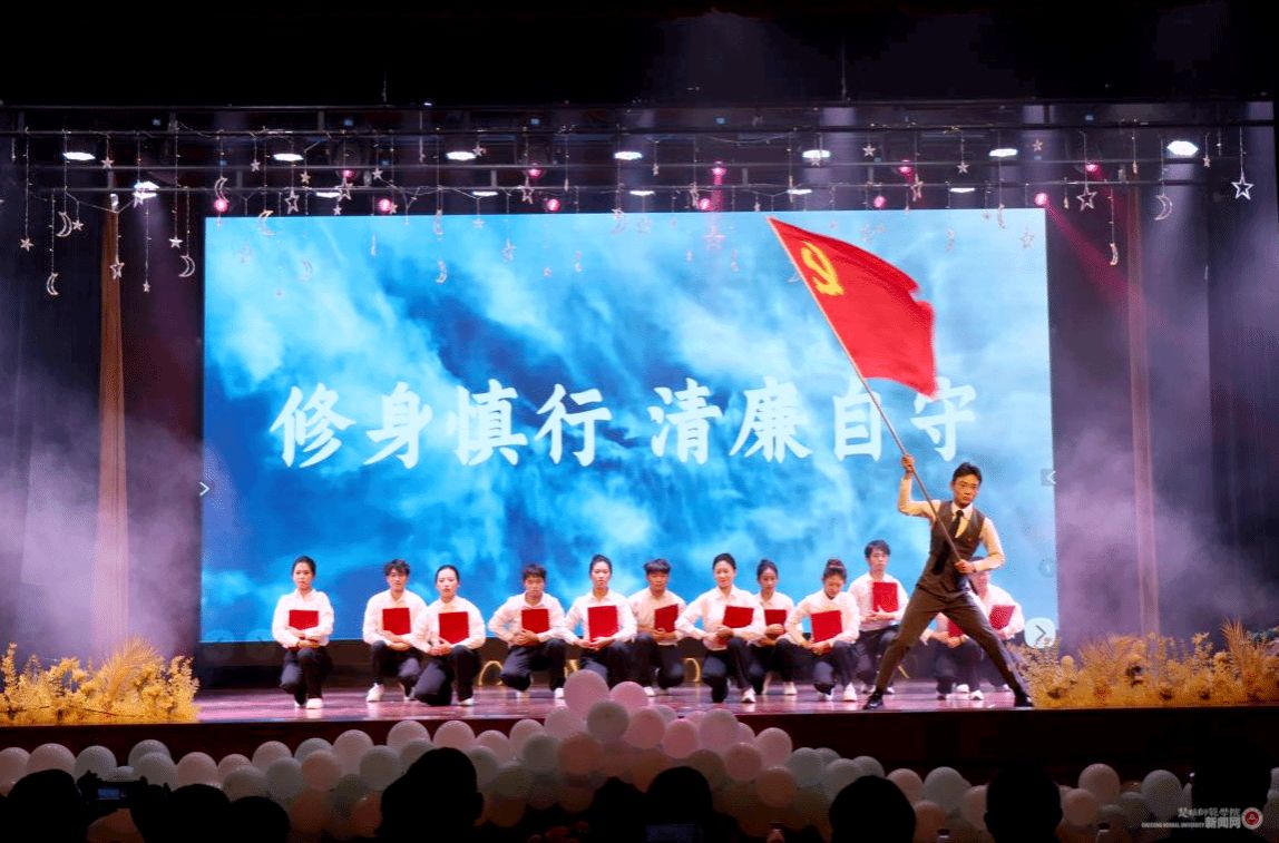 第三篇章彰显廉洁精神的薪火相传。舞蹈《廉镜》以舞为笔,绘就以廉为镜的坚守;《守初心,筑廉洁》演绎技术青年在职场诱惑中严守廉洁底线的担当;合唱《新的天地》以激昂旋律,让同学们深切感受青年一代的热血担当。