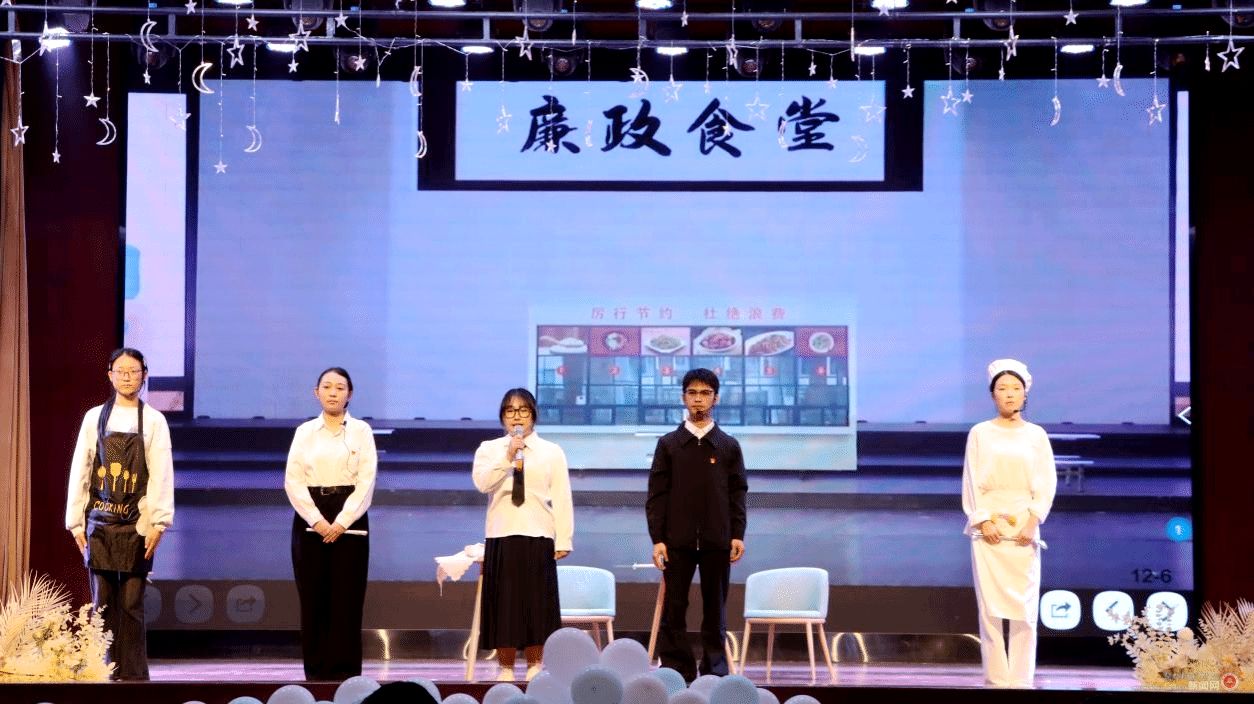 晚会由“青春扬帆,清风启航”“修身立德,廉润心田”“砥砺前行,清风永驻”三大篇章逐层递进,通过廉洁教育微视频、乐队演奏、舞蹈、配乐朗诵、情景剧、小品、民乐合奏、合唱、谜语抢答、廉洁承诺等多元、立体化的艺术形式,生动诠释廉洁内涵,传递着师生对廉洁风尚的热忱践行。