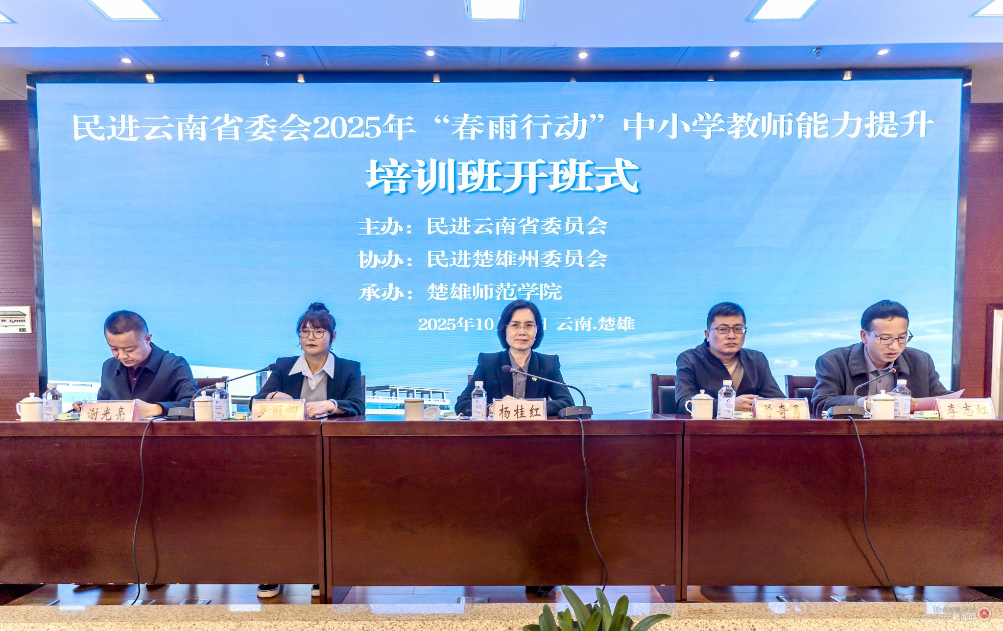 10月25日,由民进云南省委员会主办、民进楚雄州委员会协办、楚雄师范学院承办的2025年“春雨行动”中小学教师能力提升培训班在教师进修综合楼开班。培训班聚焦“‘三新’视域下的教学评一体化转型——新教材・新课标・新课堂实践路径”主题,致力于提升中小学教师专业素养,助力教师适应基础教育“三新”改革要求,来自民进各级组织遴选的95名中小学教师参加培训。我校校长、民进云南省委副主委杨桂红,民进云南省委社会服务处处长曾奇勇,民进楚雄州委专职副主委罗丽娜出席开班仪式。