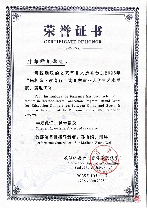 10月24日至25日,我校师生参加了云南省2025年“民相亲·教育行”南亚东南亚教育合作系列活动。在“民相亲·教育行”南亚东南亚大学生艺术展演中,我校尼加拉瓜留学生的歌舞表演充满中美洲风情的旋律,生动展现了尼加拉瓜人民欢庆丰收的场景及对和平美好生活的深切向往,成为中尼文化交流与友好情谊的动人见证。