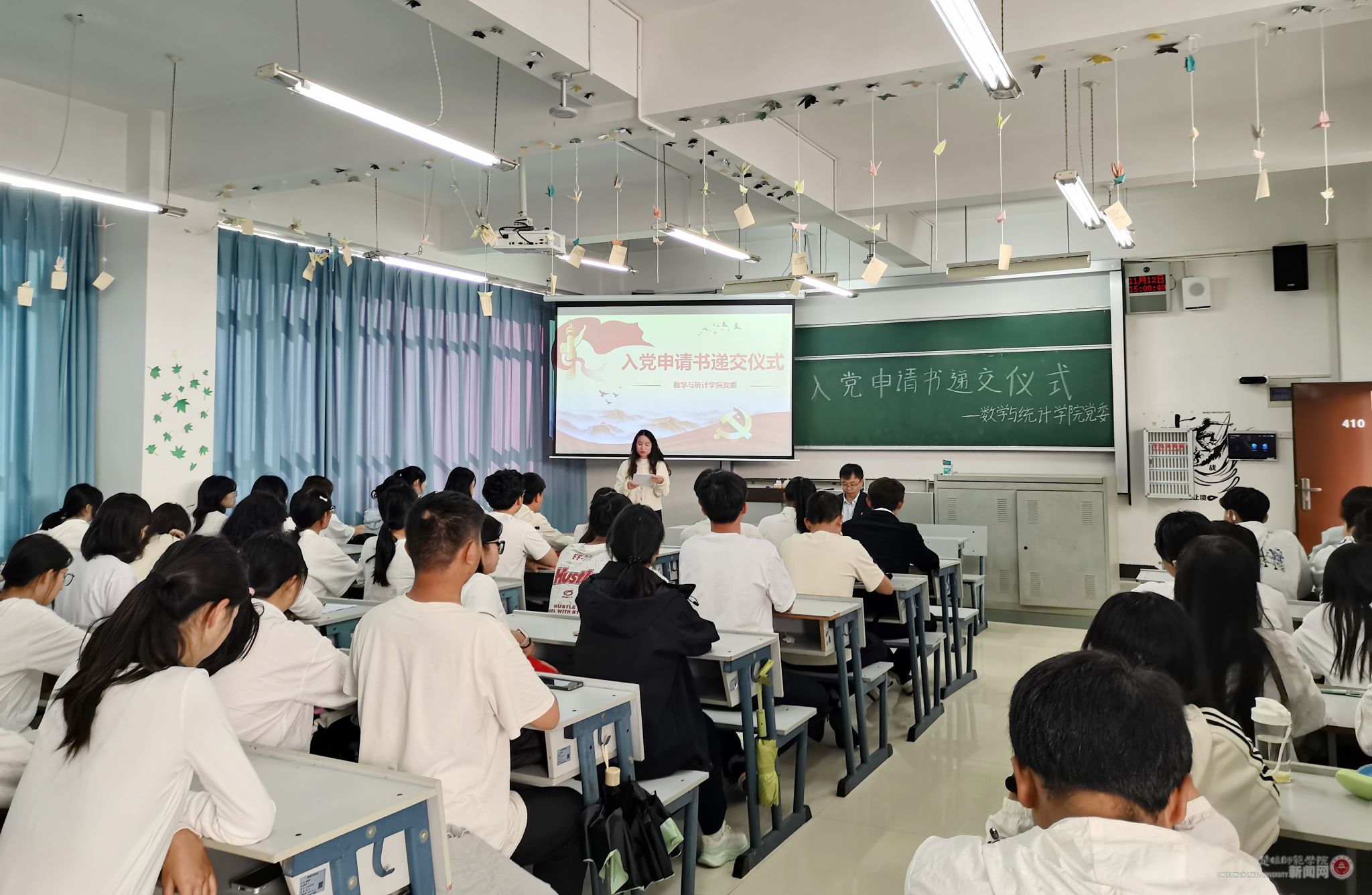 11月12日下午,数学与统计学院党委在明德楼410举行入党申请书递交仪式。学院党委成员、学生党支部书记、专职组织员及51名入党申请人参会。