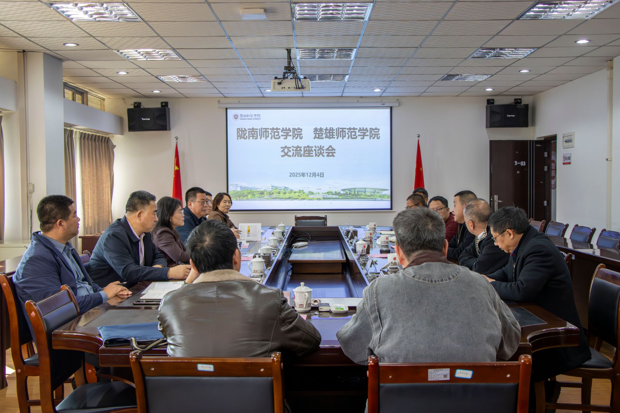 12月4日,陇南师范学院党委副书记、校长李艳红、副校长李开明等一行6人到校调研学习交流。校党委副书记施红星、副校长徐伟参加座谈交流。