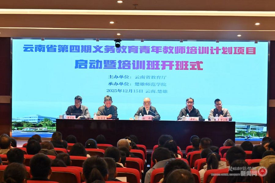 12月15日,由云南省教育厅主办、楚雄师范学院承办的2025年云南省第四期义务教育青年教师培训项目暨第一阶段开班式在教师进修综合楼举行。校党委委员、副校长徐伟,继续教育学院等相关学院负责人、项目管理团队及全省初中数学、物理、化学、地理学科300名青年教师参加开班仪式。