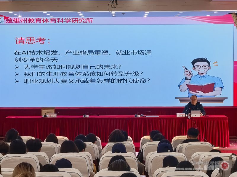 为帮助学子在时代变局中明晰职业方向,掌握职场平衡技巧,12月16日下午,我校特邀中共楚雄州委教育工委委员、楚雄州教育体育科学研究所所长、云南省生涯教育和就业指导教学指导委员会委员杨春德老师,在信息楼第一报告厅开展“在时代变局中锚定未来——从赛场到职场的平衡之道与行动指南”专题讲座。180余名师生代表参加了此次讲座。