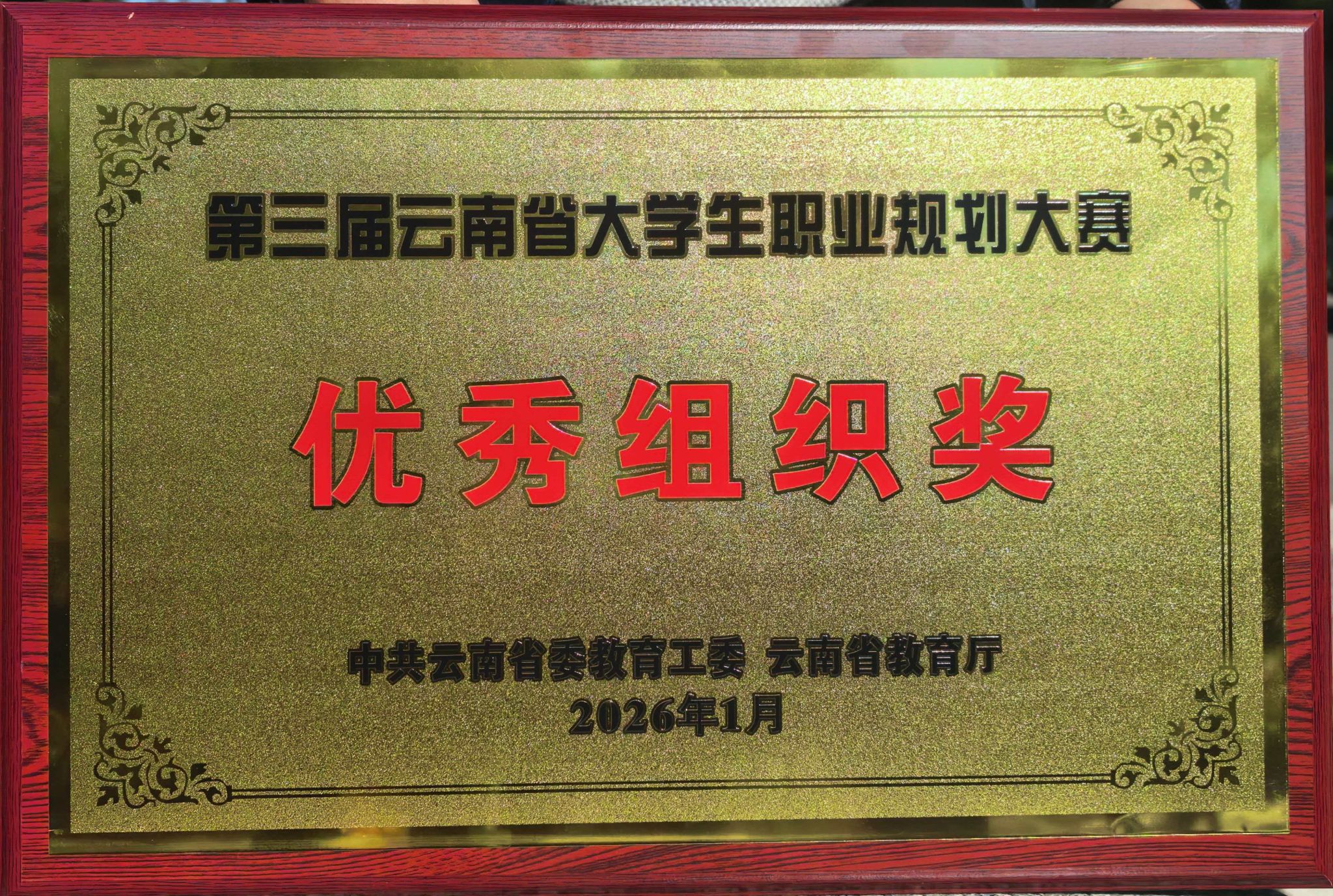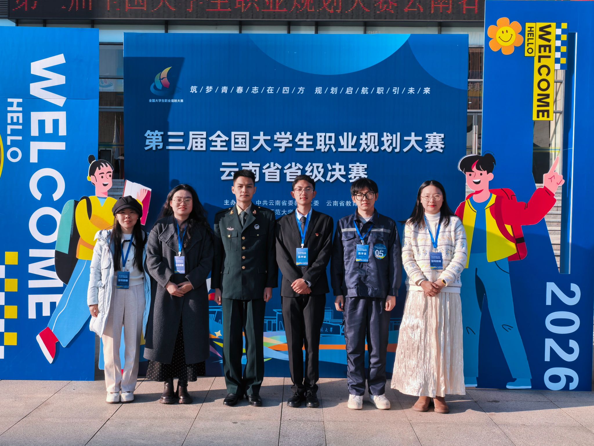 2026年1月12日至14日,第三届全国大学生职业规划大赛云南省级决赛在云南师范大学举办,我校物理与电气能源工程学院张文健同学获成长赛道省级金奖,计算机与智能技术学院王昌鑫、张坤同学获就业赛道省级银奖,姜佩林老师获评“优秀指导教师奖”,学校首次斩获“优秀组织奖”,充分彰显我校生涯规划与职业发展教育成效及综合组织实力。