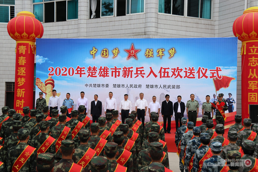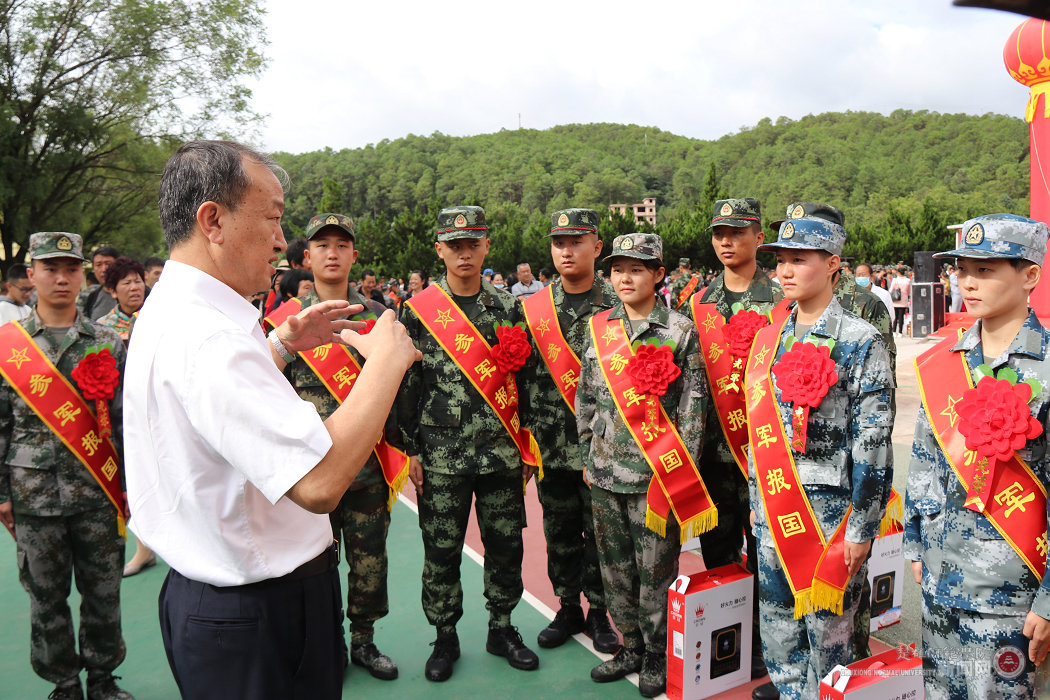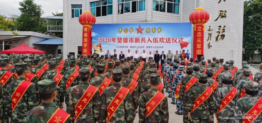 9月15日上午,楚雄市在河前民兵训练基地举行2020年度新兵入伍欢送仪式,173名新兵经过层层选拔、优中选优,身着军装,佩戴大红花,将踏上征程,奔赴祖国最需要的地方。学校党委副书记杨顺清、校武装部负责人及部分二级学院领导及教师代表参加了欢送仪式。