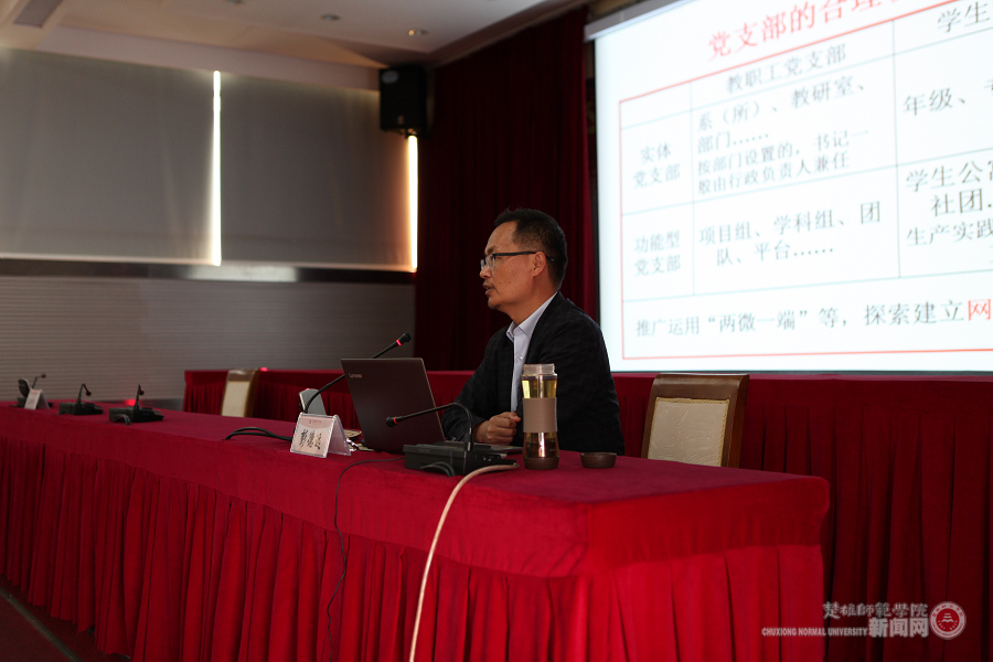 为认真学习贯彻习近平新时代中国特色社会主义思想和党的十九届四中全会精神,落实全面从严治党要求和学校第二次党代会精神,结合“万名党员进党校”的活动,10月2日,学校邀请云南农业大学马克思主义学院党总支书记彭德远副教授到校作基础党务工作专题培训。