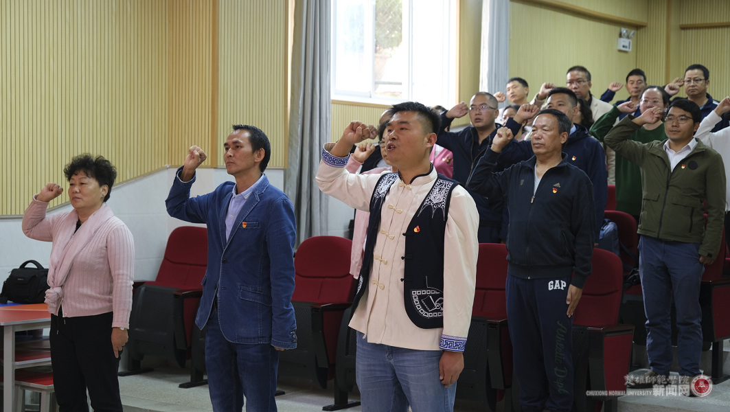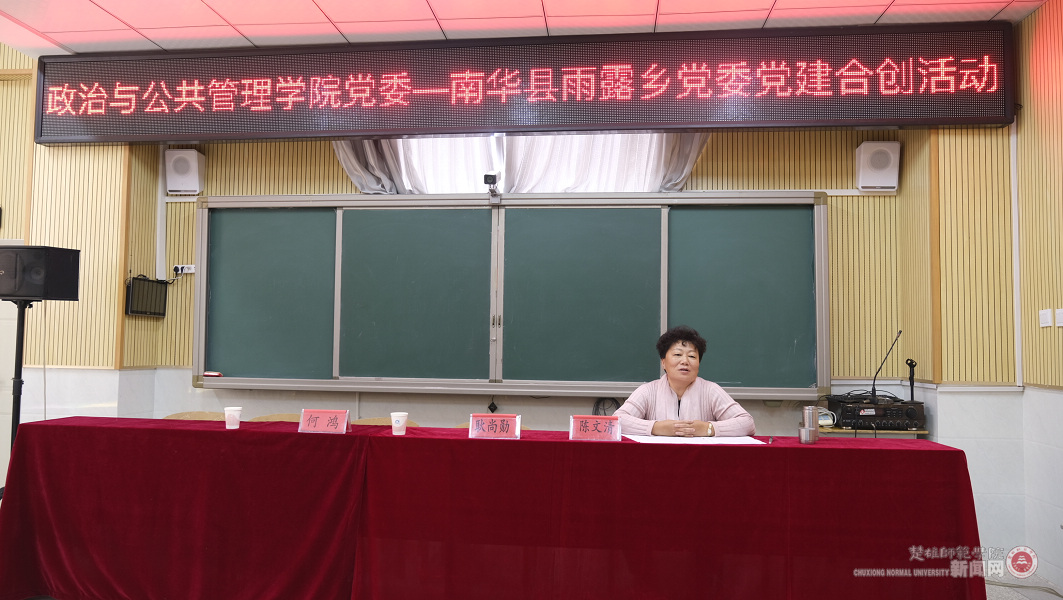 活动由政治与公共管理学院党委书记耿尚勋主持。活动首先由南华雨露乡党委书记何鸿带领全体党员重温了入党誓词,随后为9、10月入党的四名同志颁发了党员政治生日贺卡,同时政治与公共管理学院教师党员朱元富、张前明和雨露乡党员干部叶丽娟、任赛四位同志发表了入党感言。紧接着,政治与公共管理学院院长陈文清教授围绕十九届四中全中精神的学习为全体党员做了《推进国家治理体系和治理能力现代化》的专题辅导,雨露乡党委书记何鸿同志介绍了雨露乡基本情况,并就师生关心的科研选题做了解答和说明,最后党员走访了相关的场所和基地,并开展了课题研讨。