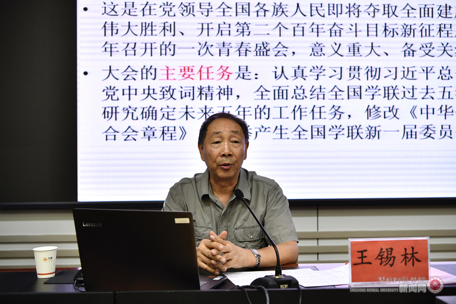 王锡林教授就全国学联二十七大会议精神作全面解读,围绕学联学生会的定位职能、基本任务、深化改革的前进方向、从严治会的有关要求等几个方面深入剖析了当前和今后一个阶段学联学生会前进方向和总体部署。号召广大青年学生坚定跟党走、奋进新时代,学习贯彻习近平总书记贺信和党中央致词精神,深入学习“四史”,深刻领悟总书记对青年学生的殷殷关怀与谆谆教导,深切感悟领袖的历史担当、人民情怀,不断增强政治认同、思想认同、情感认同,坚持德智体美劳全面发展,努力成长为担当民族复兴大任的时代新人。