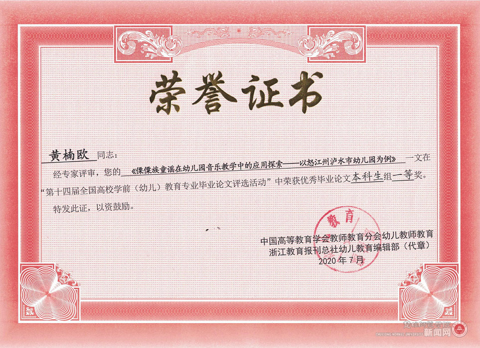 评选结果是对我校学子努力付出的肯定,也是对论文指导教师用心耕耘的认可。希望学前教育学院全体师生再接再厉,争创更好的成绩。