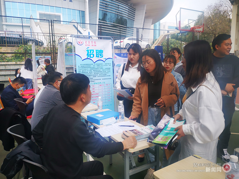 招聘会现场人头攒动、气氛热烈,山东师范大学安宁华清中学、昆明经济技术开发区正道实力中学、云南摩尔农庄生物科技开发有限公司、晶科能源(楚雄)有限公司等161家用人单位共提供了近4600个招聘岗位需求,涵盖教育培训、互联网、电子商务、加工制造、酒店餐饮、农业、金融服务等多个行业。据初步统计:山东师范大学安宁华清中学招聘现场吸引了500多名毕业生的咨询,200余名毕业生现场投递了求职简历;晶科能源(楚雄)有限公司收到了近200份毕业生求职简历,不少展位前应聘学生排起了长队,毕业生求职时认真谦逊的态度和对应聘的热情,充分展现了楚师学子的专业基础和优良品格,取得了良好的效果。