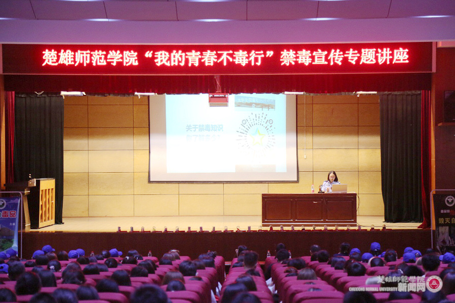 在第34个国际禁毒日即将到来之际,在学校党委宣传部的指导与帮助下,管理与经济学院和楚雄州禁毒委员会办公室、楚雄州公安局共同举办的“我的青春不毒行”——禁毒宣传专题讲座于5月26日晚在雁塔校区上礼堂举行。