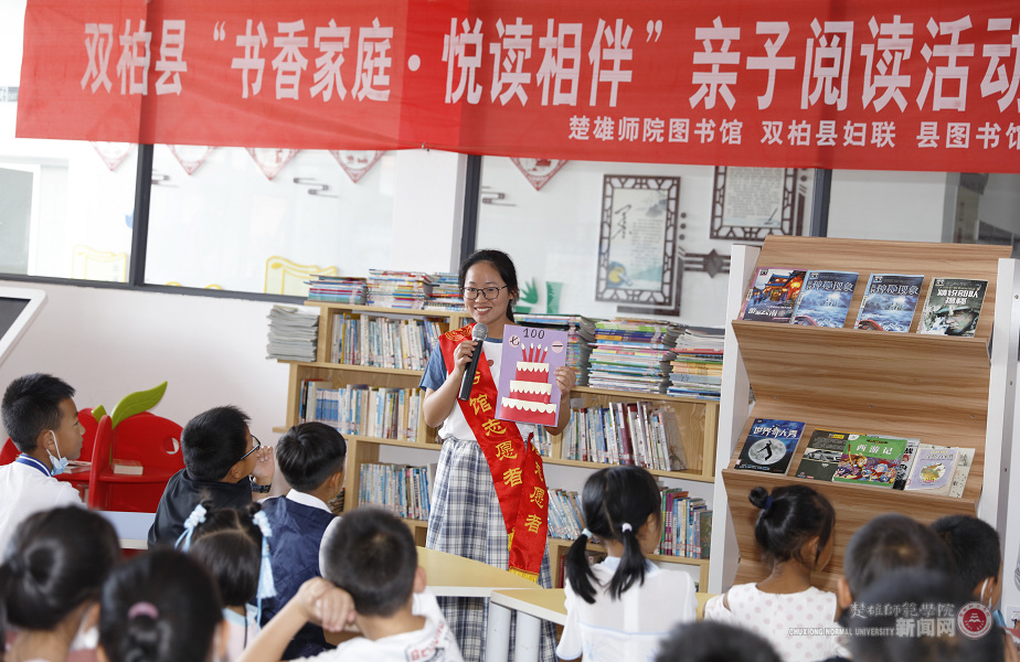 5月29日上午,我校图书馆受双柏县政府、妇联、图书馆的邀请,在周明武副馆长(主持工作)的带领下,图书馆2名老师和6名图书馆志愿者参加了双柏县“颂百年风华·传红色基因”家庭亲子阅读活动,并为60个家庭的孩子与家长开展了以“书香家庭·悦读相伴”为主题的公益绘本阅读推广活动。
