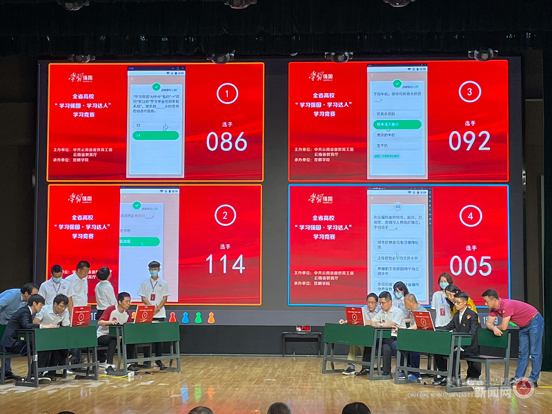 在顺利通过预赛笔试后,学校选派的环化学院范树国老师,党委组织部张勇老师,语言文化学院马粼老师在现场闯关赛环节成绩全部进入全省前50名。其中范树国老师连续答对1216题,位列全省第5名顺利进入现场达人赛的决赛。张勇老师位列全省第17名,马粼老师位列全省第48名。