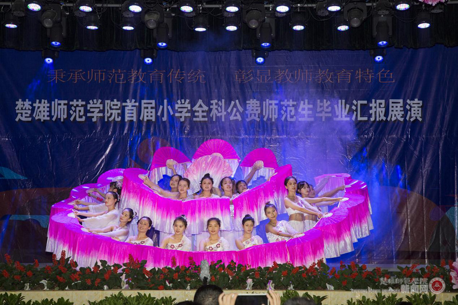 随后领导、嘉宾和全体师生一起观看了小学教育专业首届全科公费师范生艺术特长展演。展演晚会节目形式多样、内容丰富,异彩纷呈。朗诵《小萝卜头和妈妈的灵魂对话》、绘本故事《卖火柴的小女孩》、音乐剧《大山支教》、书画音诗《水墨丹青》等节目表演感人至深,一次次把晚会推向高潮。