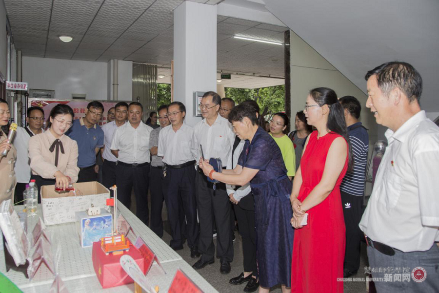学校领导、嘉宾及师生们兴致勃勃地参观了“优秀自制教具展区”“优秀原创儿童文学手绘配画作品展区”“优秀教学设计方案展区”“优秀书法作品展区”“优秀手工工艺作品展区”“优秀国画、油画、水粉画展区”和“优秀板书板画展区”,并不时与公费师范生进行交流,同学们的成果获得了领导、专家的一致赞誉、好评和肯定。