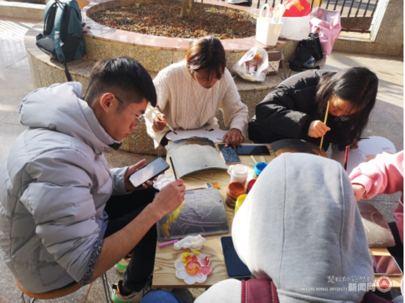 一到目的地,同学们不顾路途劳累,立即以饱满的热情和良好的精神状态投入到实践中。一片片平淡无奇的瓦片在同学们的画笔下熠熠生辉,一个个朴实无华的簸箕在色彩的滋润下光彩夺目,围观的村民纷纷为学生们竖起了大拇指。