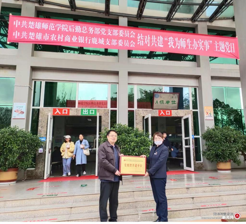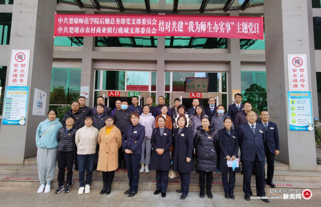 为落实学校《关于党支部结对共建和开展“我为群众办实事”实践活动主题党日活动的活动的通知》要求,推进党史学习教育走深走实,创新基层党组织工作方式,拓展结对共建形式,12月17日上午,后勤总务部党总支和楚雄市农村商业银行鹿城党支部在花果山校区溢香餐厅小广场开展了“学史力行 我为群众办实事”结对共建主题党日活动。