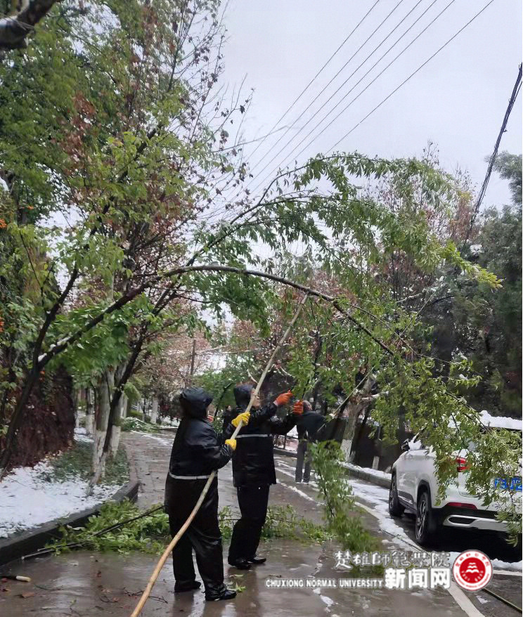 2月22日上午,突降大雪,气温骤降,美丽的校园披上了洁白的外衣,校园银装素裹,气氛宁静和谐。为减少降雪对树木的损伤和交通造成的不便,确保校园道路及各项设施安全,上午,后勤总务部党总支迅速组织校园环境管护中心、物业水电服务中心员工不顾风雪来到校园,巡查校园内树木、水电、后勤设施等物业受损情况。下午,后勤总务部党总支一、二支部党员克服严寒来到学校与校园环境管护中心员工积极开展校园除雪行动,物业水电服务中心工作人员对屋顶冻裂的太阳能及水管进行排查并进行抢修,雁塔校区和花果山校区主干道、人行道边树上的积雪和阻挡道路的断裂树枝被及时清扫干净,保障了师生的正常水电设施供应和安全出行。