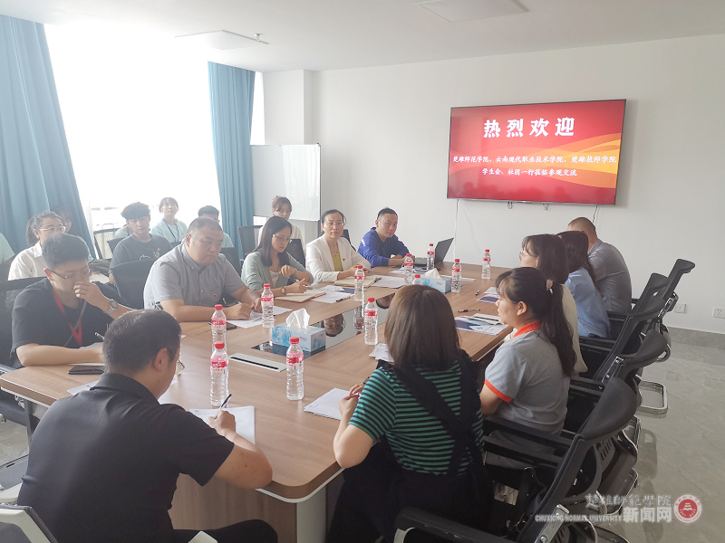 9月14日下午,我校团委书记尹坤萍、团委副书记邹治豪与云南现代职业技术学院、楚雄技师学院团委书记张艳丽一同带领两校学生会、社团学生干部赴中科(楚雄)创新中心进行参观交流学习。国科元科技(北京)有限公司西南区负责人张新钊、中科(楚雄)创新中心总经理宋晓燕参加交流座谈。